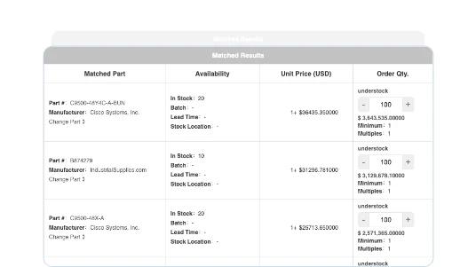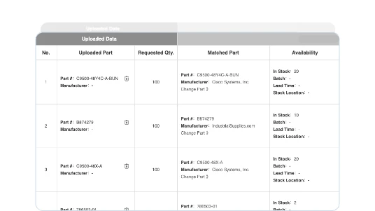 Automatically identify mixed information in BOM files, allowing you to say goodbye to tedious sorting work. Information such as part numbers, brands, parameters, quantities, lead times, batches, and prices is displayed in an orderly manner.